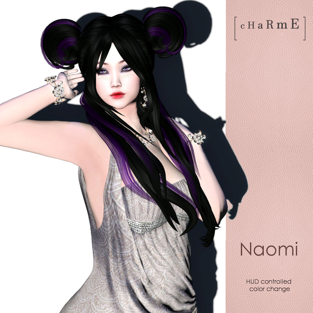 The Naomi is a cute set of hair from Charme is available in 5 different sets of colors, easily controllable via the included HUD.